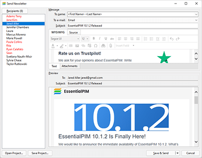 Reach out to your contacts with customized newsletters. Easily create and personalize newsletters with dynamic fields, allowing you to tailor your message to each recipient.