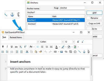 Easily navigate within your documents by adding anchors anywhere in the text. Jump directly to specific parts of the document with ease.